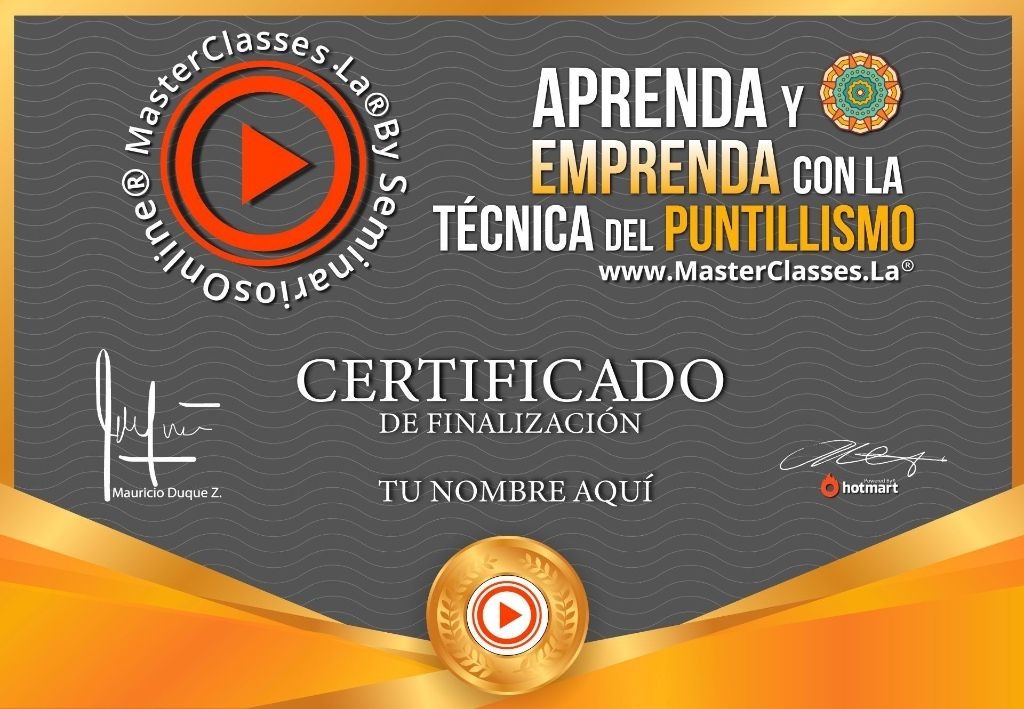 ¿Te gustaría desarrollar tu creatividad y controlar los niveles de estrés al mismo tiempo? Con el Master Class APRENDA Y EMPRENDA CON LA TECNICA DEL PUNTILLISMO, podrás aprender a crear hermosas obras de arte utilizando materiales reciclados y básicos. Además, podrás decorar tu hogar y generar ingresos desde casa. Aprenderás diferentes diseños, técnicas y herramientas del puntillismo, descubrirás tus talentos y habilidades, controlarás el estrés y la ansiedad, y recuperarás tu autoestima. También aprenderás a diseñar y crear tu perfil y página de fans en Facebook, lo que te permitirá emprender y generar ingresos para ti y tu familia. No solo avanzarás en tu desarrollo personal, sino también en tu desarrollo espiritual, profesional, emocional y financiero. Al finalizar el curso, recibirás un certificado avalado por Hotmart y Seminarios Online. ¡No pierdas la oportunidad de desarrollar tu creatividad y emprender con esta técnica terapéutica!
