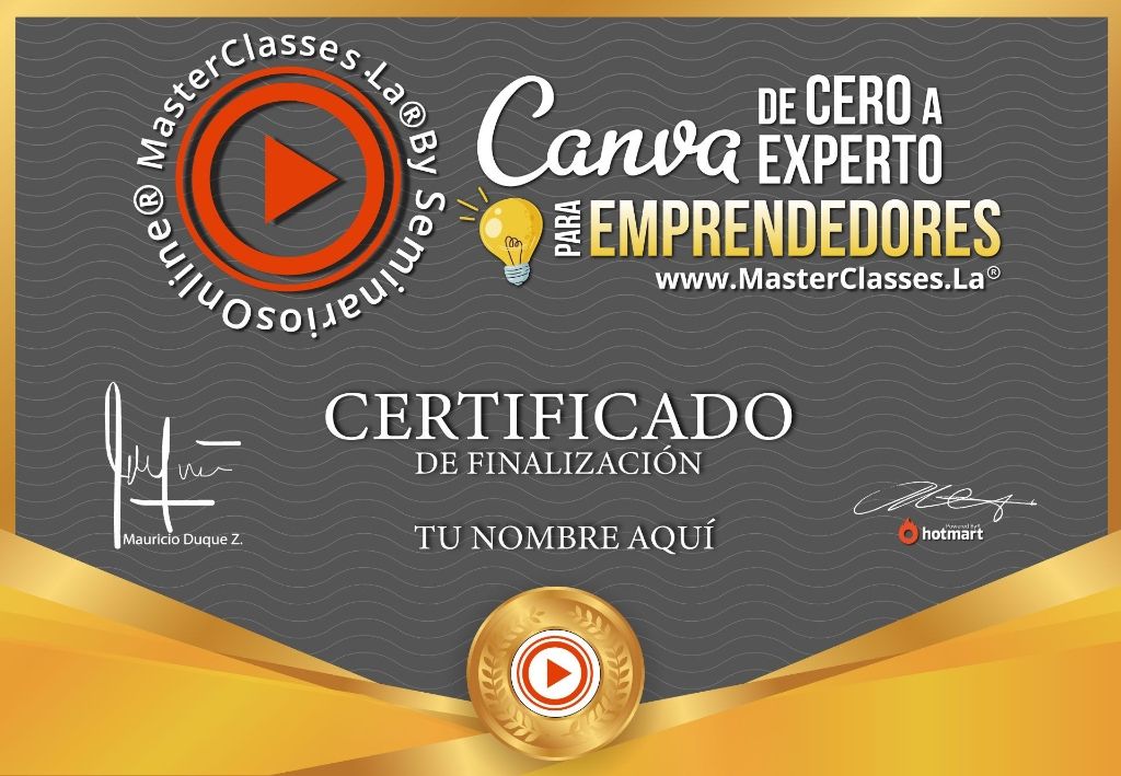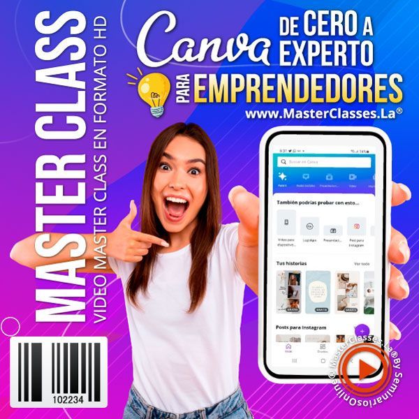 ¡Descubre cómo crear diseños profesionales y llamativos sin experiencia en diseño gráfico! Con el MasterClass CANVA DE CERO A EXPERTO PARA EMPRENDEDORES, aprenderás a utilizar la plataforma de Canva para mejorar la imagen gráfica de tu negocio en redes sociales. Aprenderás desde cero el funcionamiento de Canva, cómo subir tus propios archivos multimedia, crear tu marca corporativa y mucho más. Además, podrás generar ingresos adicionales administrando redes sociales de otros emprendedores o empresas. ¡Obtén tu certificado avalado por Hotmart y Seminarios Online! No pierdas esta oportunidad de impulsar tu marca de manera profesional y optimizar tus recursos financieros. ¡Inscríbete ahora!