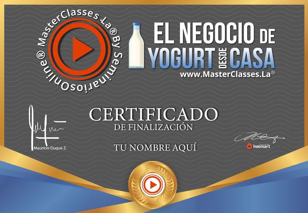 ¡Descubre el negocio rentable del yogurt casero! Aprende la receta, manejo de ingredientes y su manipulación en el MasterClass EL NEGOCIO DE YOGURT DESDE CASA. Obtén conocimientos para impulsar tu producto en redes sociales y accede al certificado avalado por Hotmart y Seminarios Online. Conviértete en un experto en yogurt casero y descubre por qué es una fuente nutritiva de calcio. ¡No pierdas la oportunidad de acceder a este programa de por vida!