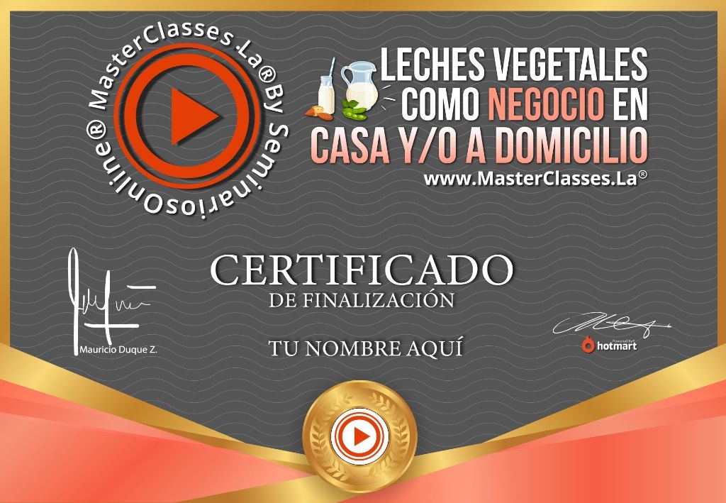 ¿Sabías que puedes aprender a crear, preparar y comercializar leches vegetales desde tu casa y tener un negocio altamente rentable? Con el MasterClass «Leches Vegetales como Negocio en Casa y/o a Domicilio» podrás lograrlo. Aprenderás por qué es importante el consumo de estas leches y cómo se convierten en la mejor alternativa para reducir el consumo de leche animal. Además, tendrás la oportunidad de emprender en esta industria en rápido crecimiento a nivel mundial. No pierdas la oportunidad de escalar un negocio rentable de Leches Vegetales o incorporarlo en tu propia vida y la de tu familia. ¡Obtén tu certificado avalado por Hotmart y Seminarios Online!