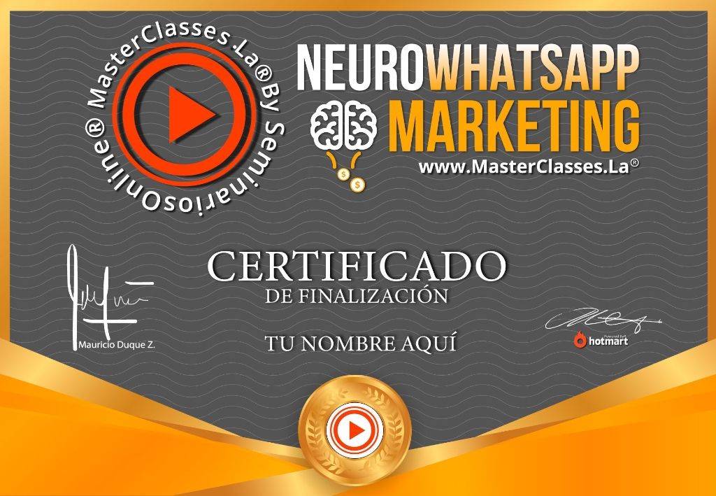 Aprende a disparar tus ventas con WhatsApp a través del MasterClass NEUROWHATSAPP MARKETING. Descubre cómo combinar esta poderosa herramienta con la psicología del consumidor y de la venta para optimizar tu proceso de ventas. Conoce las herramientas para prospectar clientes, configura profesionalmente el perfil de tu negocio, envía mensajes personalizados según el interés de tus prospectos y construye un mensaje de alto impacto. Aprende a venderle a la mente a través del neuromarketing y atrae clientes desde Facebook. Obtén un certificado avalado por Hotmart y Seminarios Online. ¡No te lo pierdas!