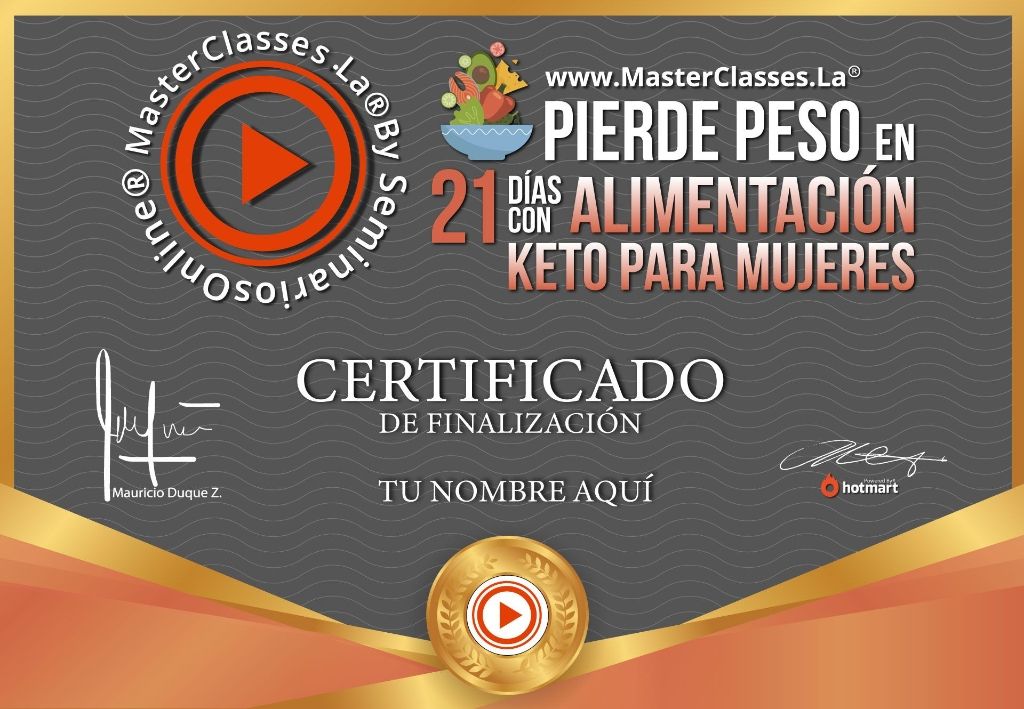 El MasterClass PIERDE PESO EN 21 DÍAS CON ALIMENTACIÓN KETO PARA MUJERES es un curso diseñado para mujeres que desean perder peso de manera acelerada y duradera. Aprenderás sobre la cetosis, donde tu cuerpo utiliza la grasa como fuente de energía principal. Con acceso a herramientas esenciales, menús completos y bonos adicionales, estarás preparada para alcanzar tus metas de pérdida de peso. Desarrollado por María Camila Márquez, experta en estilo de vida keto, este curso te guiará paso a paso para lograr resultados exitosos. ¡Únete al reto y transforma tu salud y estilo de alimentación!